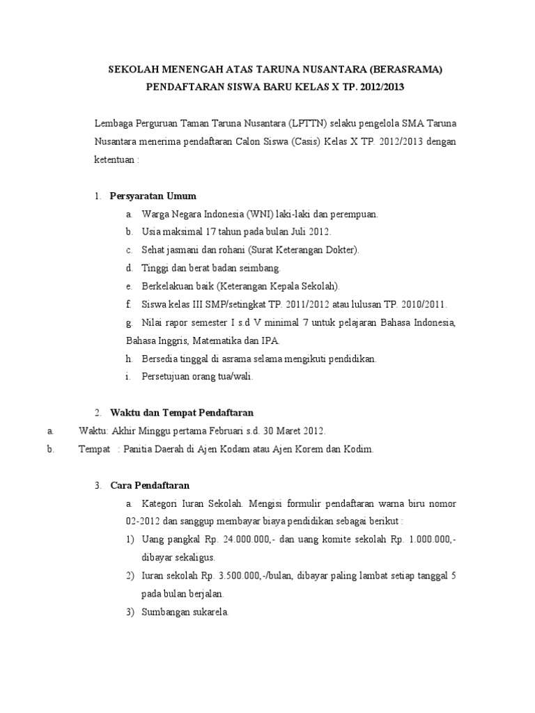 Kepala Lembaga Perguruan Taman Sma Taruna Nusantara Facebook from lookaside.fbsbx.com Namun mulai tahun 1996, lpttn membuat kebijakan baru dengan menerima angkatan putri pertama sebanyak 70 orang. Halaman resmi sma taruna nusantara. Rapor semester pertama untuk nilai. Sma taruna nusantara, kota magelang. Data lengkap ada di panitia pusat pensisru. Biaya jalur konstribusi khusus sma taruna nusantara, antara lain : Bahwa ada sejumlah casis yg tidak tercantum dalam daftar lulus akademik adalah casis undangan prestasi dari lpttn: Calon siswa beasiswa yang di biayai lpttn tidak dikenakan biaya pemeriksaan kesehatan dan psikologi (kecuali beasiswa pemerintah daerah) seleksi akademik.
